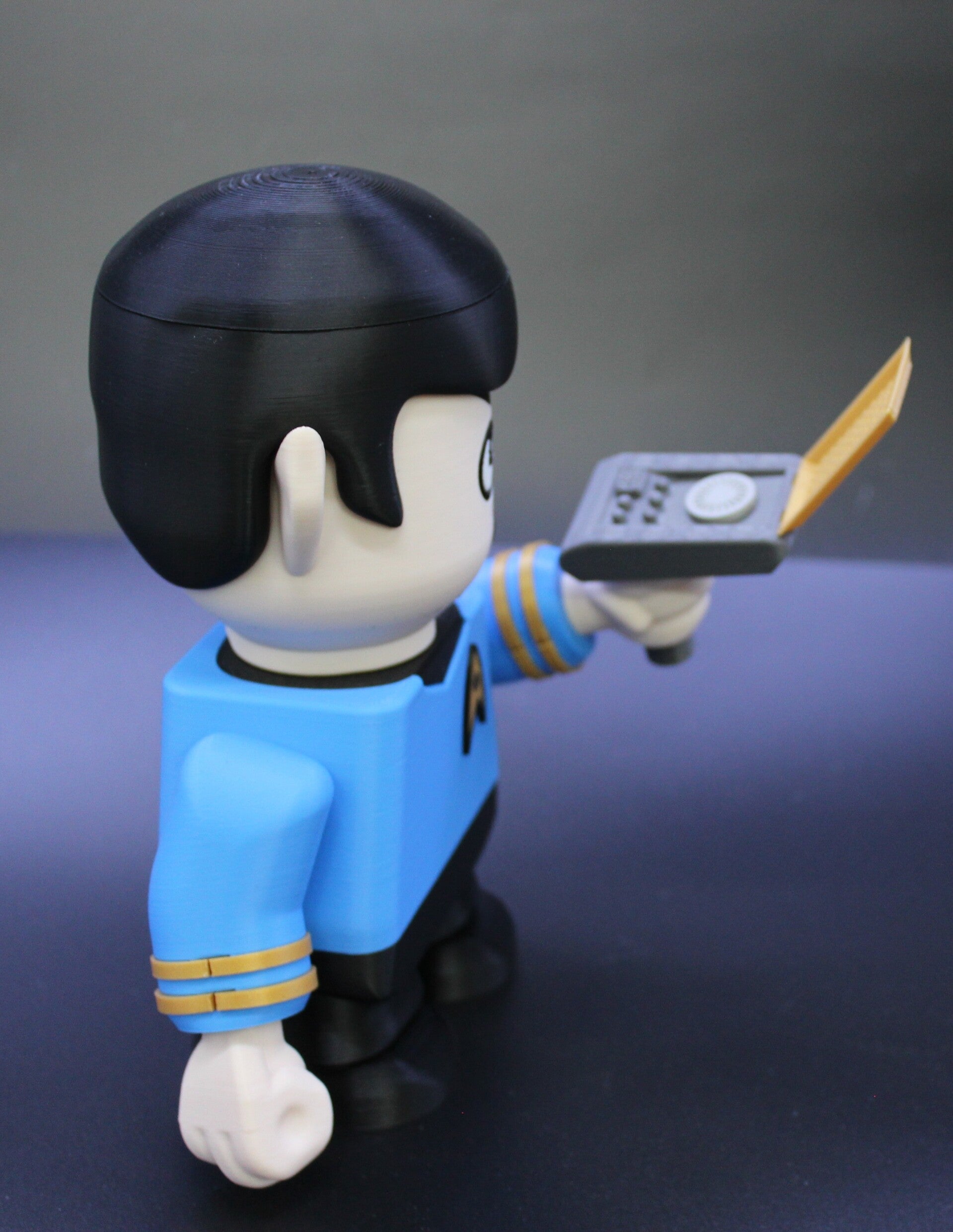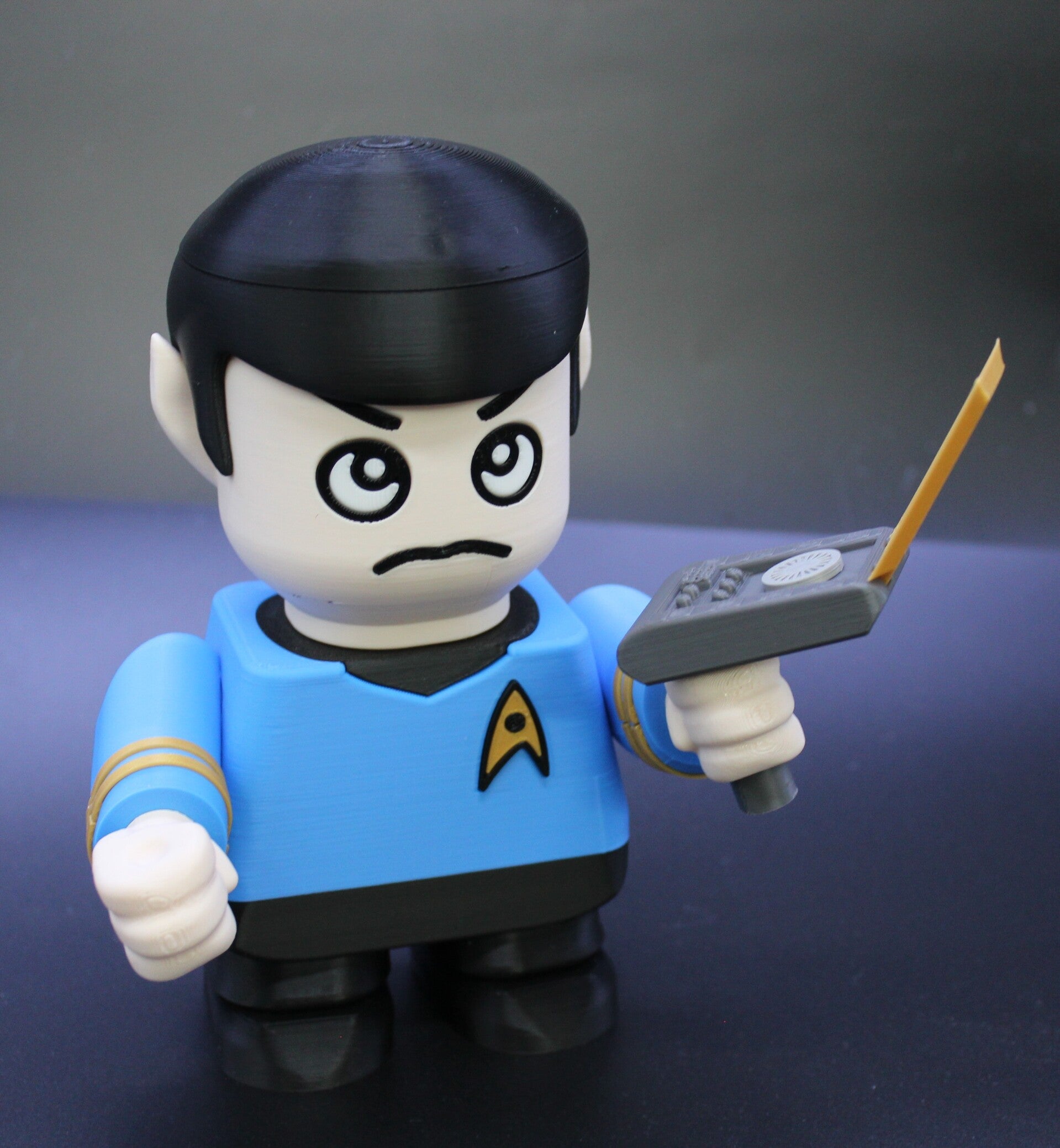 This chunky Spock kit is roughly 6.5 inches (17cm) tall with his communicator in hand "beam me up Scotty"