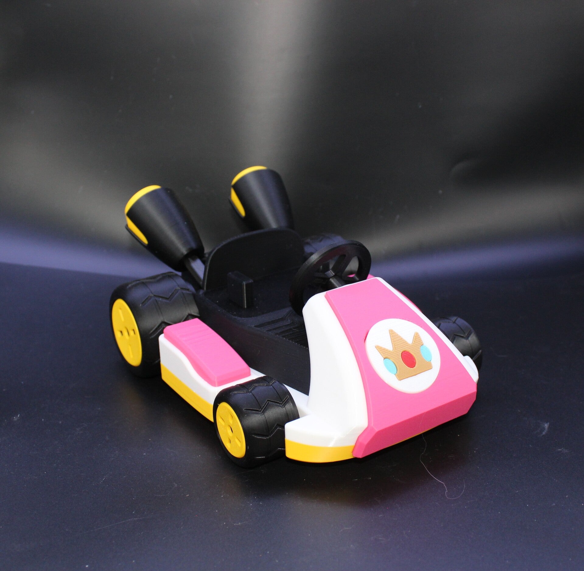 What makes Princess Peach's Kart truly stand out? It's the meticulous attention to detail in replicating its in-game counterpart, from the royal crown emblem to the gleaming golden chassis. The vibrant, signature pink color captures Princess Peach's spirit perfectly. Choose this kart for its unparalleled accuracy and the joy it brings, ensuring your collection truly shines. Add this iconic piece to your arsenal today!