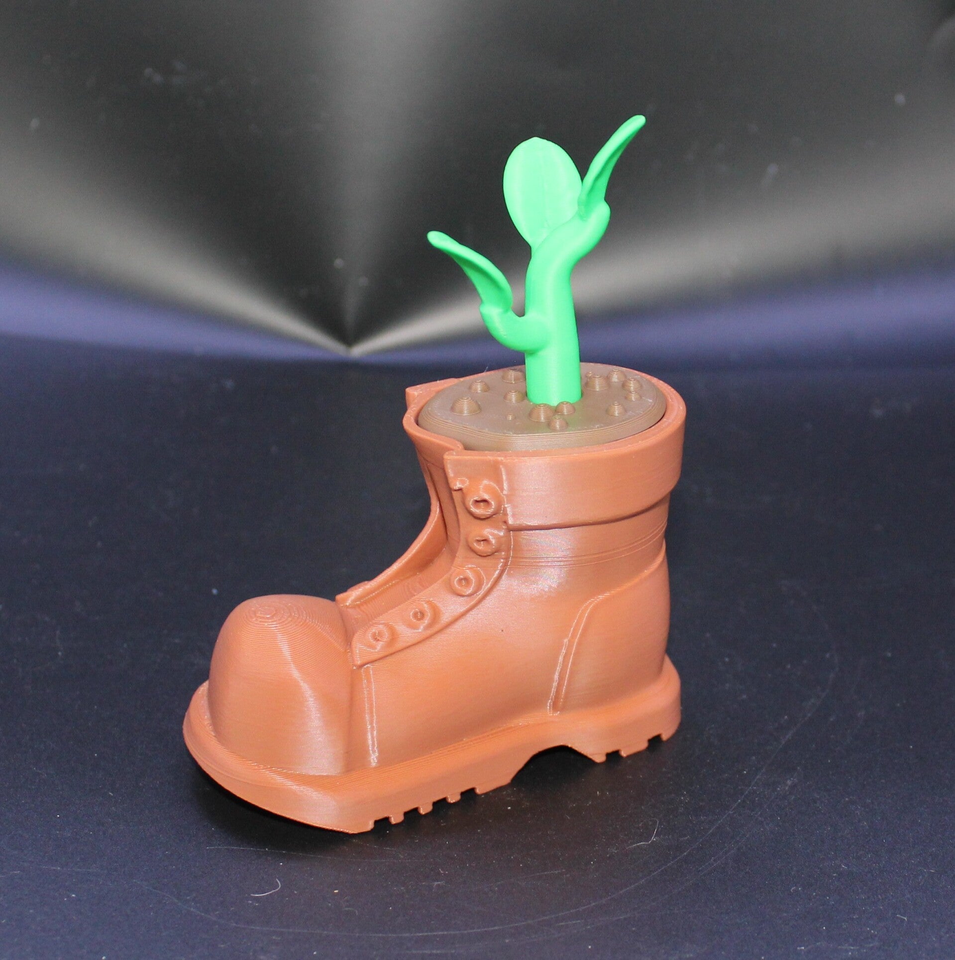 Unlike traditional plant pots, our "Flowerpot Boot" is a solid 3D printed model, a faithful replica directly from the beloved movie Wall-E. We've captured every detail to bring this iconic piece to fans and collectors. It's a statement piece, a conversation starter, and a true tribute to the film.